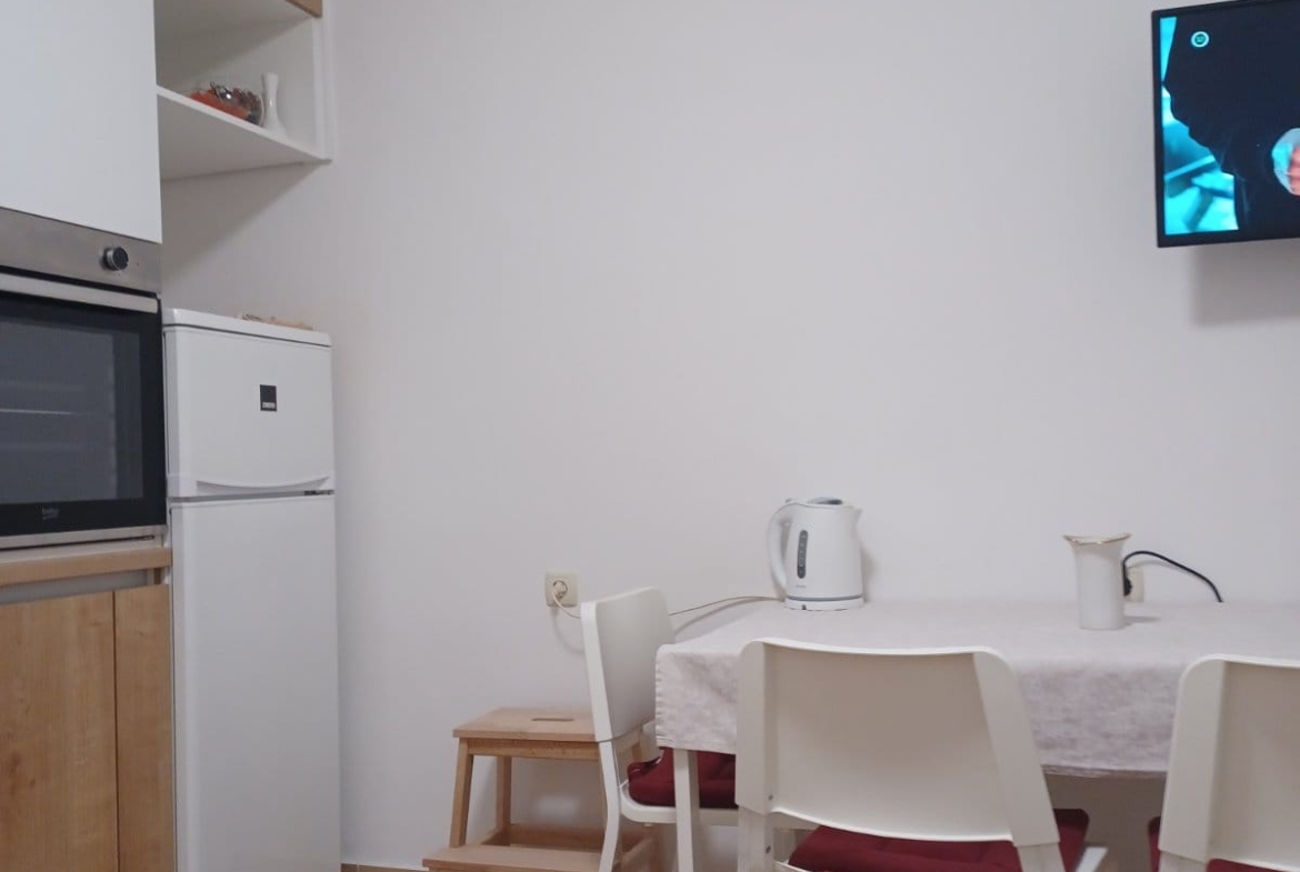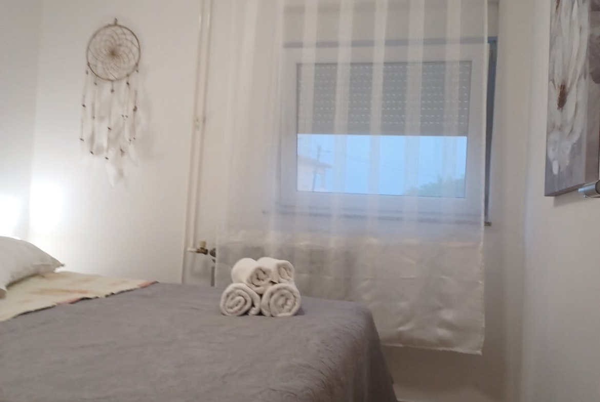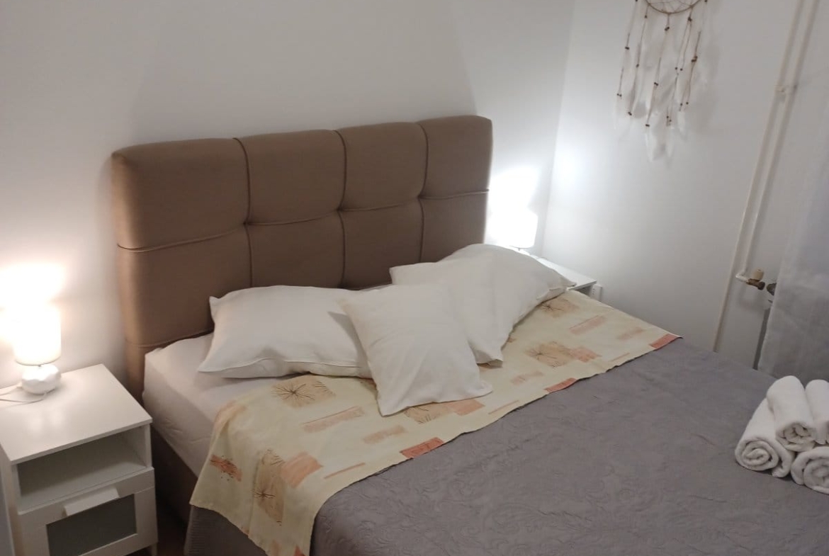Apartment can accommodate 3 guests. Beds are situated in 1 sleeping rooms, but also in the living room, within 31m2. Guests can use a private terrace to enjoy the warm summer evenings. Food can be prepared using barbecue which is shared with other guests too. This accommodation unit welcomes pets at an additional charge.